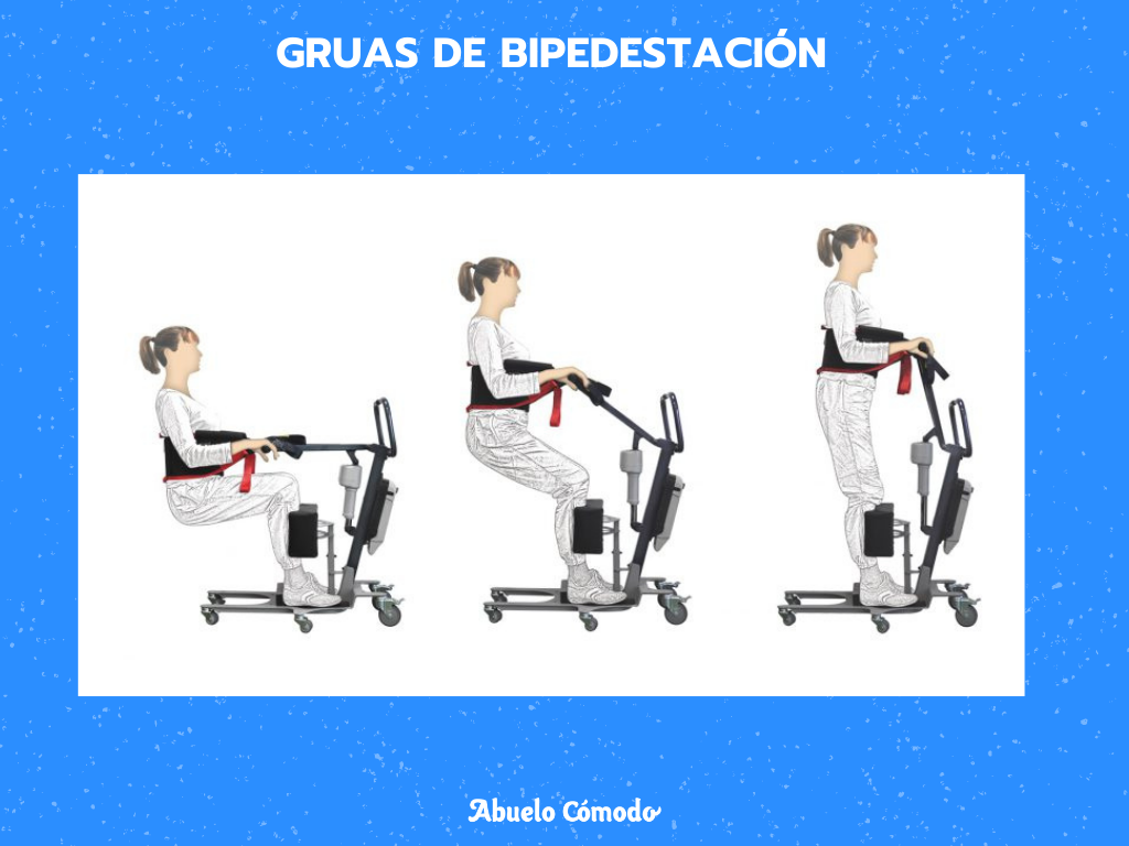 Las grúas para pacientes de bipedestación son efectivas para pacientes que pueden realizar una parte del trabajo de pararse o sentarse por sí mismas, actúa únicamente como un apoyo para que estos pacientes se levanten. No son aparatos baratos y hay que estudiarlos bien, pues cada uno tiene distintas funcionalidades dependiendo de las necesidades específicas de las personas discapacitadas.